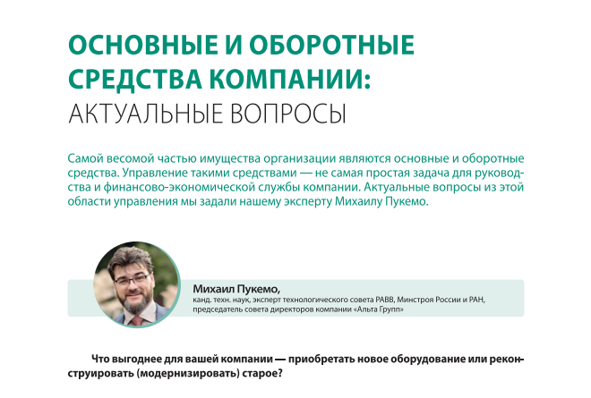 Михаил Михайлович Пукемо, кандидат технических наук и эксперт МИНСТРОЙ РФ, эксперт ЭТС РАВВ, эксперт Академии Наук, Председатель совета директоров Компании Альта Групп поделился своими уникальными знаниями и опытом в области управления основными и оборотными средствами на предприятии в свежем выпуске журнала ПЭО (№6, июнь 2024) Михаил Михайлович раскрыл ключевые стратегии Альта Групп, которые помогают оптимизировать затраты на оборудование, аренду недвижимости, хранение запасов и эффективное использование оборотных средств.