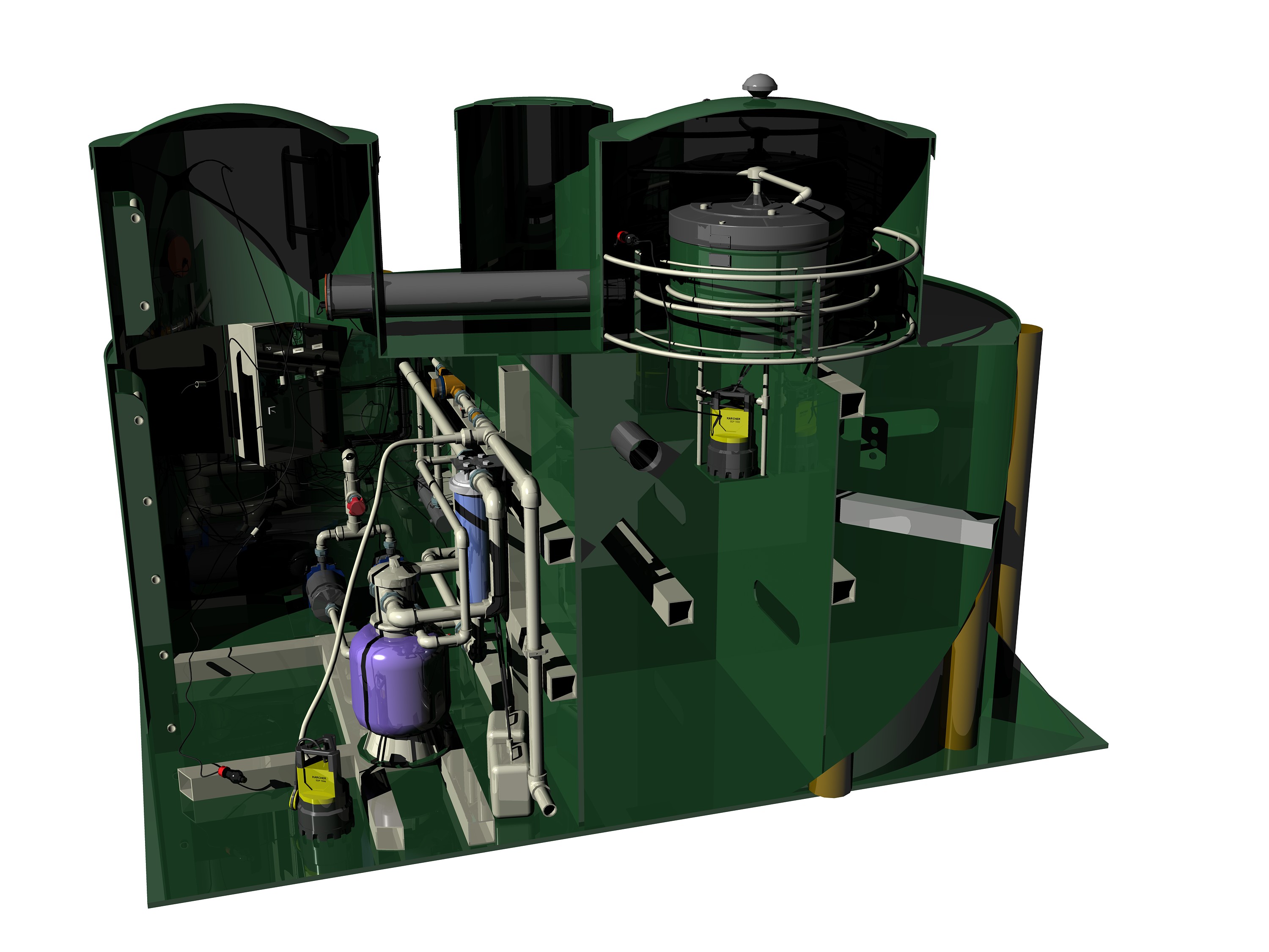 Рабочий, аварийные насосы – 3 шт., UV стерилизатор – 1 шт., Насос дозатор – 1 шт. |